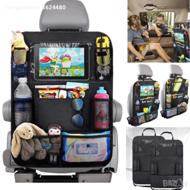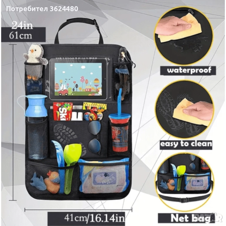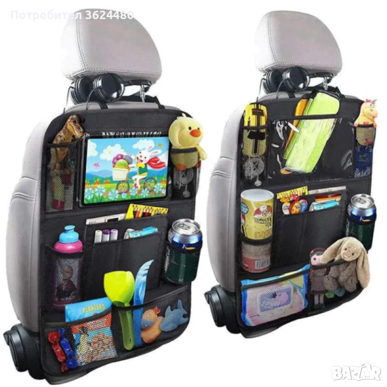 Този органайзер се отличава с голям капацитет за съхранение, предлагайки осем разнообразни джоба, подходящи за всевъзможни предмети, включително таблети, играчки, меки играчки, книги, списания, бираци, химикалки, бебешки бутилки, безалкохолни напитки, закуски, носни кърпички, кърпички и други.
