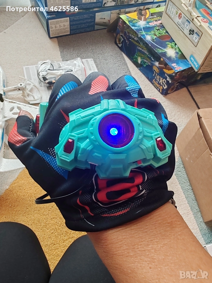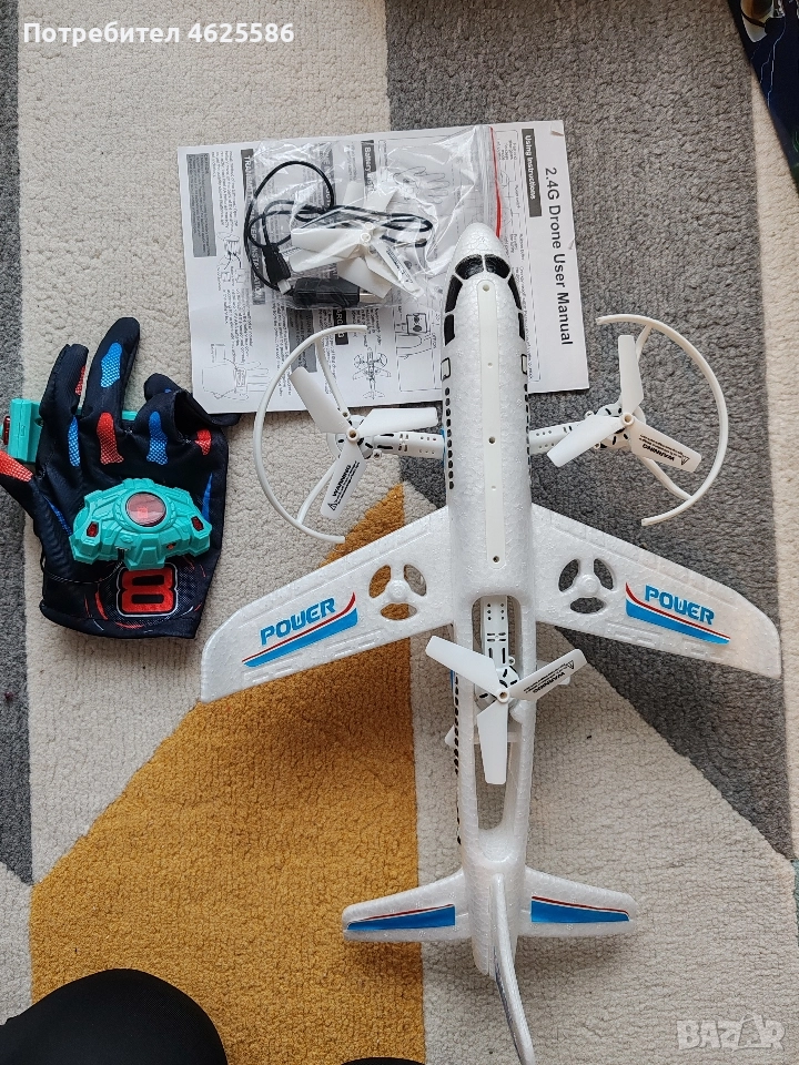 радиоуправляем самолет-дрон с управление чрез сензорна ръкавица. Този тип играчка комбинира функциите на самолет и дрон, като позволява както хоризонтално летене, така и вертикално излитане и кацане. Характеристики Управление: Основната му функция е управлението с кинетична (сензорна) ръкавица, което прави маневрите по-интуитивни чрез движения на ръката. Обикновено включва и традиционно дистанционно управление. Дизайн: Изработен е от лек и издръжлив EPP (експандиран полипропилен) материал, който е гъвкав и устойчив на натиск, осигурявайки по-голяма издръжливост при сблъсъци. Функции: Често разполага с функции като 360-градусово обръщане (флип), режим за задържане на височина, излитане/кацане с един бутон и LED светлини. Предназначение: Подходящ е за игра както на закрито, така и на открито, и е чудесен за начинаещи поради лесните си за усвояване контроли. Допълнително: Включва се чрез USB кабел и обикновено се предлага с резервни батерии и перки.