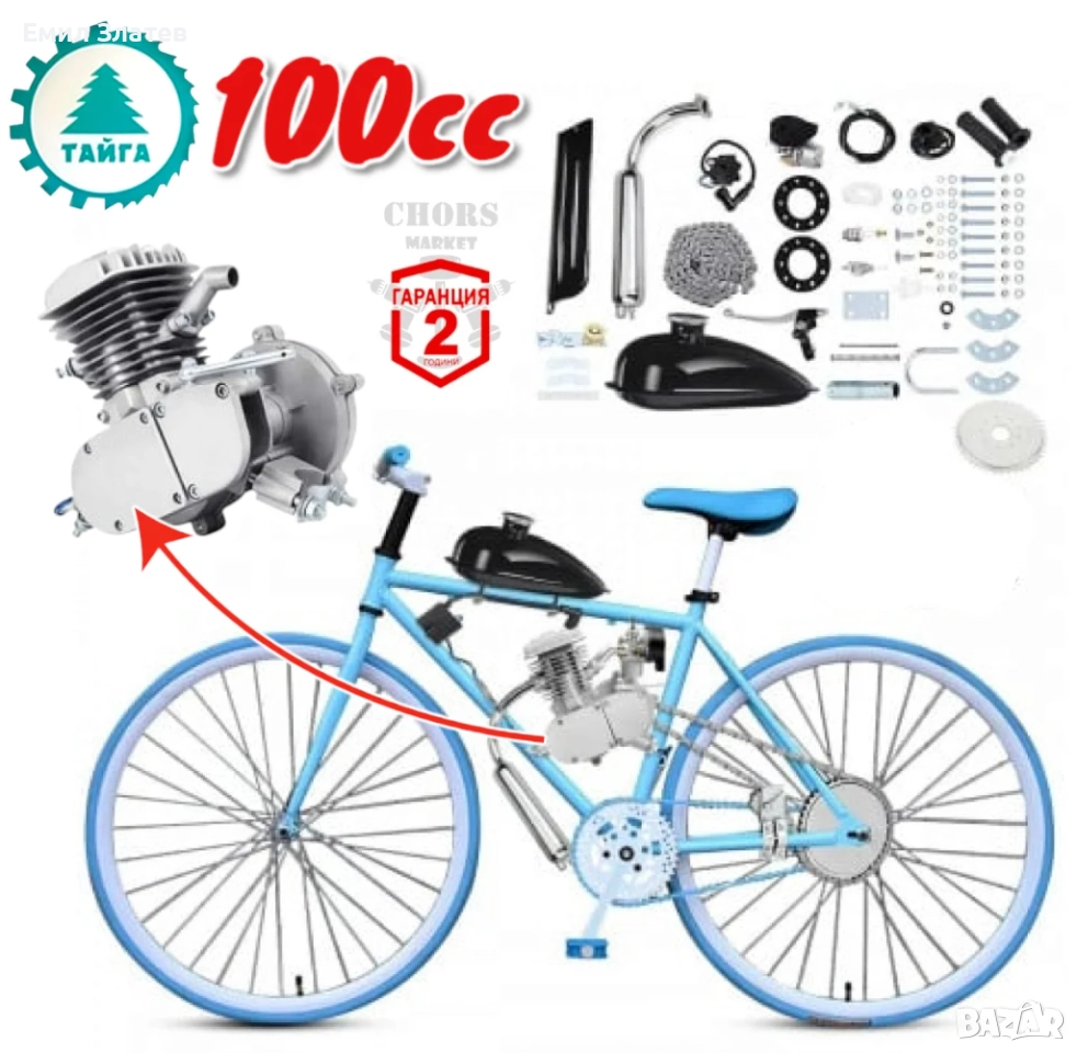 Бензинов Двигател за Велосипед 100 Кубика Велодвигател ТАЙГА