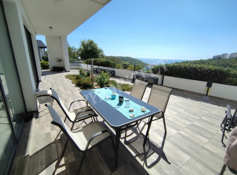 Втори етаж: от обширен коридор се влиза към всяка от трите спални и баня/тоалетна. Една от спалните има собствена баня с вана и тоалетна. Трите спални имат излаз към тераса с прекрасна гледка към морето.