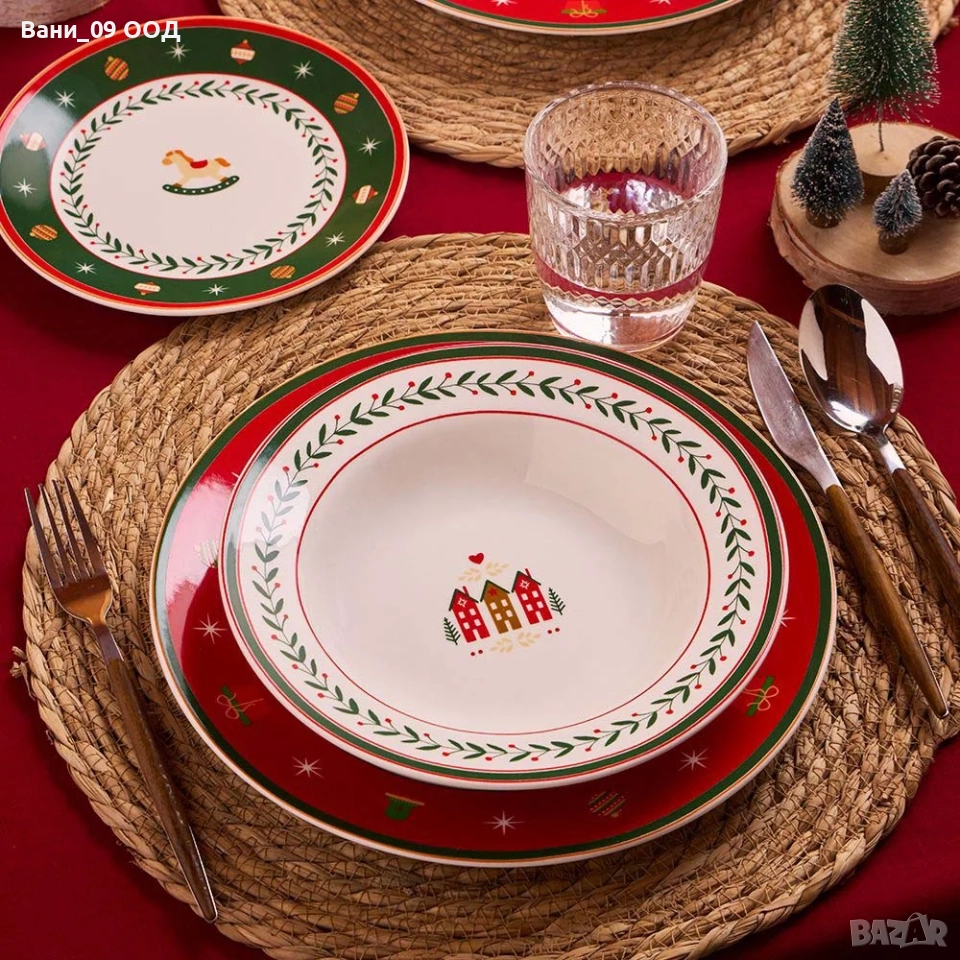 Страхотен Коледен Порцеланов сервиз за хранене от 18 части за 6 човека