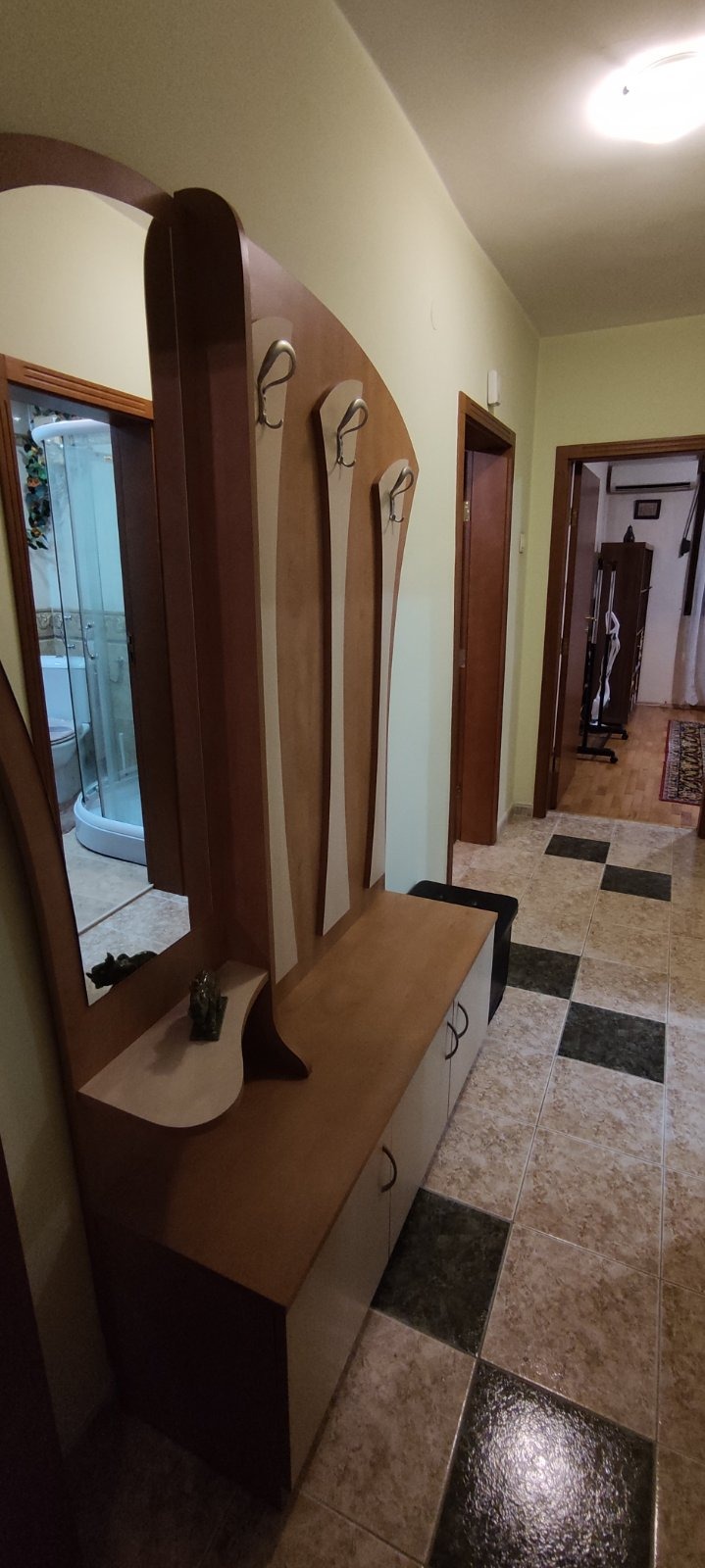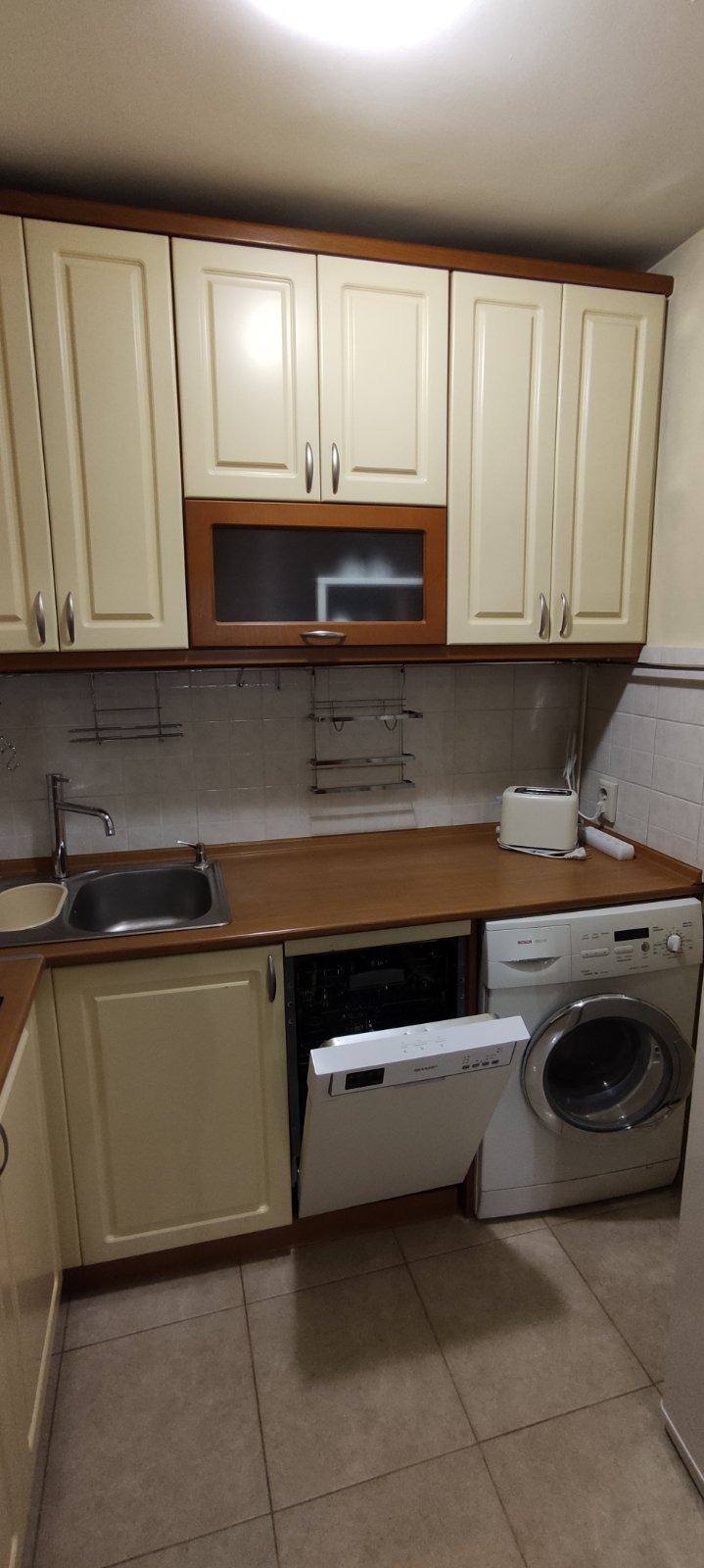 Напълно обзаведен,екстри:миялна машина,машина отпадъци,TV,СОТ.Уютно жилище с умел подбран всеки детайл и решение.Възможно дългосрочно наемане.Моля БЕЗ домашни любимци и с-ва с малки деца.
