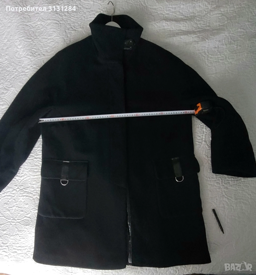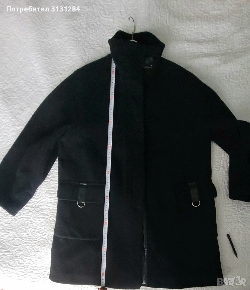 Великолепно палто от известна италианска компания, 80% вълна, меко и топло, много добър модел за всяка фигура, с лачена кожена тапицерия. Размер 50-52...Реглан. Ог - 62, дължина - 96, ръкав от мишнице - 42.
