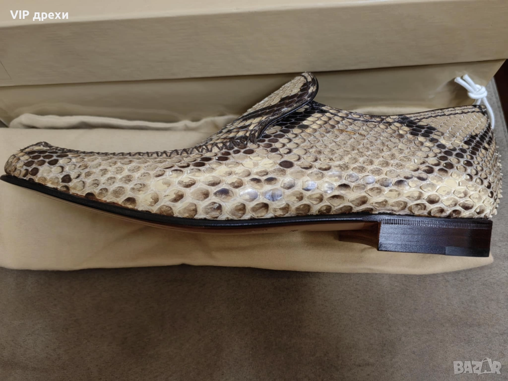 Оригинални Италянски обувки натурална кожа питон лимитирана серия няма от къде другъде да се купят вече аз съм ги копувал но не ги нося седят в кутията имам доста такива обувки общо взето нося само лимитирани серии и само оригинални обувки цената в магазина като съм ги копувал беше 2450 Евро с намаление.Просто хубавото си е и скъпо който носи оригинални неща знае и за реалните цени на подобни артикули такива обувки се пускат примерно няколко чифта и това е който взел взел.Давам ги на 40% от цената им.