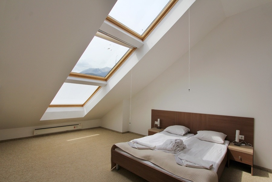 Останалите две спални са обзаведени с две единични легла. Апартаменя няма балкон, но всички спални са светли с прозорци тип Велукс.