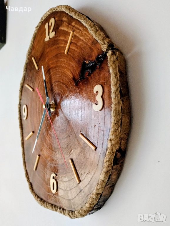 Ръчно изработен дървен стенен часовник, снимка 1 - Декорация за дома - 52688395 Ръчно изработен дървен стенен часовник, снимка 2 - Декорация за дома - 52688395 Ръчно изработен дървен стенен часовник, снимка 3 - Декорация за дома - 52688395 Ръчно изработен дървен стенен часовник, снимка 4 - Декорация за дома - 52688395 1/4