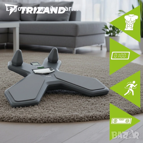 - Балансиращата дъска Trizand е модерно средство за трениране на баланса, укрепване на мускулите на тялото и подобряване на координацията. Вграденият електронен таймер ви дава пълен контрол над времето за тренировка, а иновативният обръщаем панел ви позволява да адаптирате тренировката според вашите нужди. Лека, стабилна и оборудвана с практичен нивелир, тя ви помага да тренирате ефективно и безопасно.