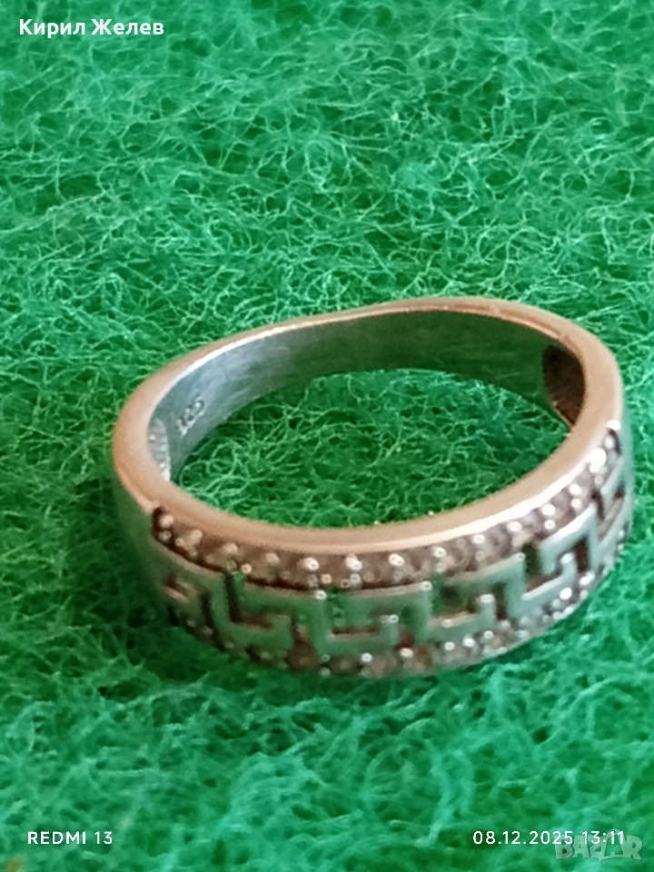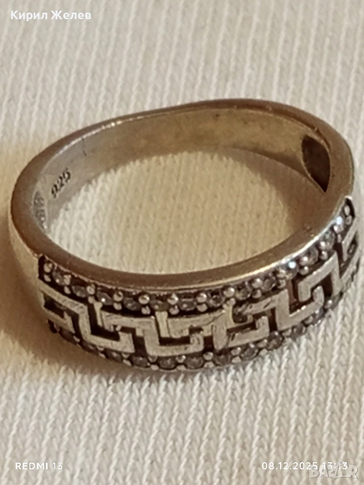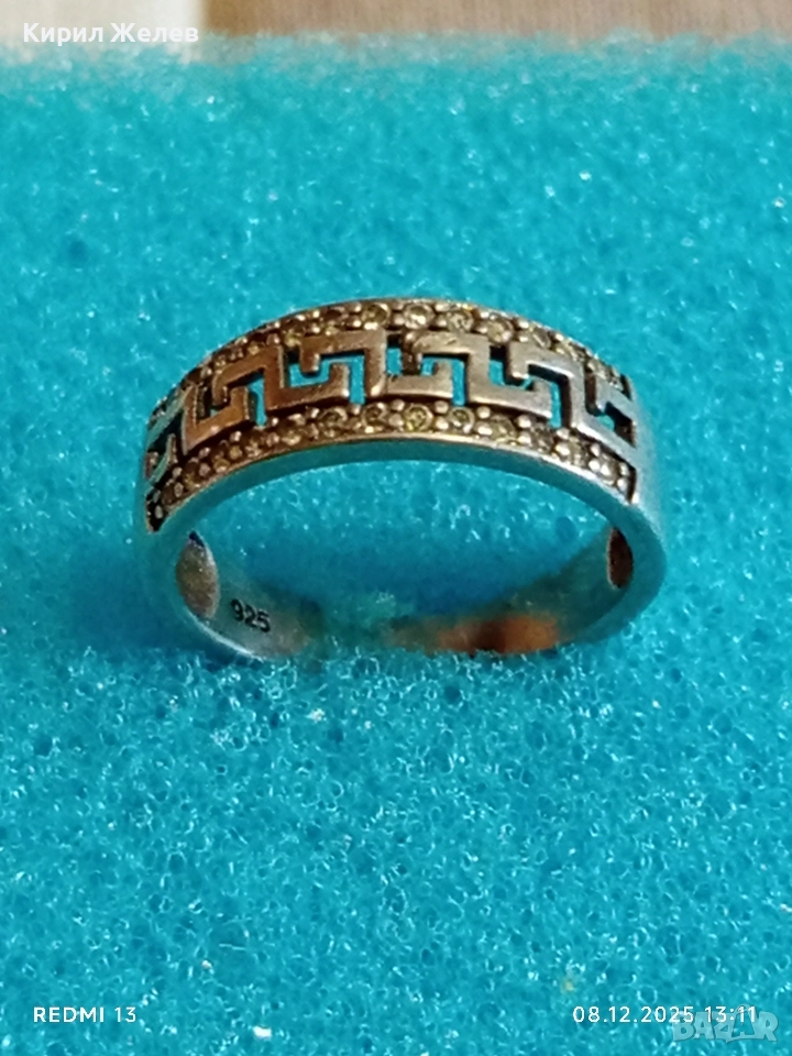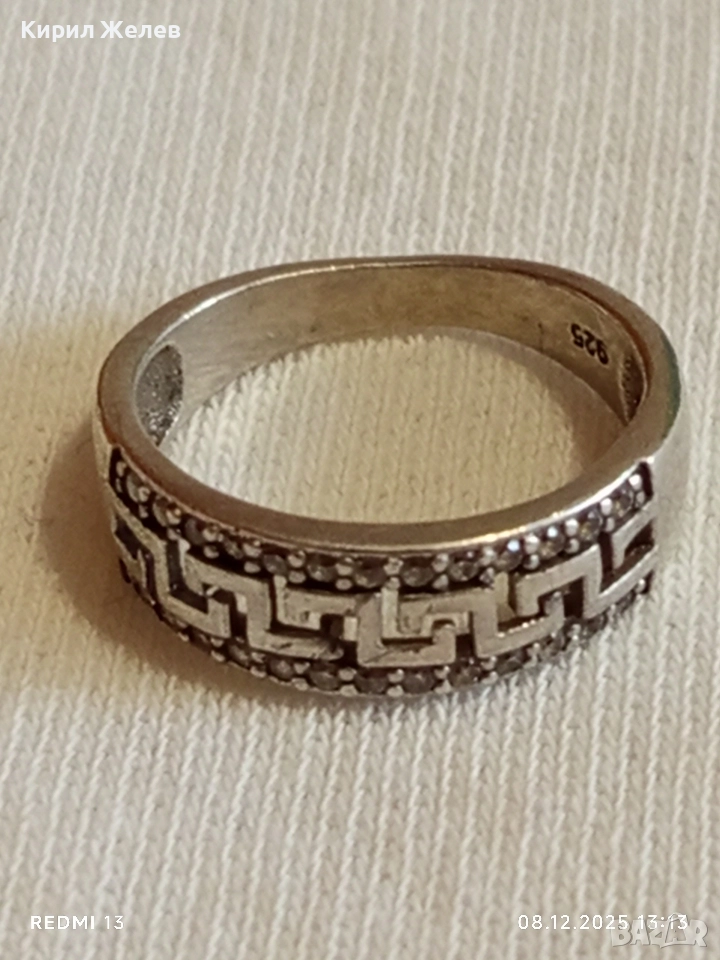 Красив сребърен пръстен с гръцки мотив и инкрустирани кристали майстоска ръчна изработка 42263