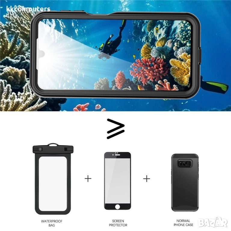 С водоустойчив рейтинг IPX8, калъфът поддържа устройството напълно функционално дори при потапяне във вода до 2 метра дълбочина. Освен това IP6X прахоустойчивостта гарантира пълна защита от замърсявания и микрочастици.