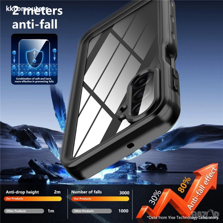 Калъфът издържа на падания от до 2 метра височина, като запазва пълната функционалност на устройството.