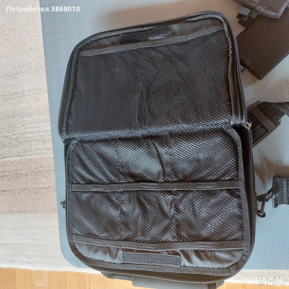 Чантата е без забележки. Има модулни вътрешни преградни. Състоянието е видимо на снимките - няма скъсано, протрито или други дефекти. Ципове, велкро и т.н. функционират правилно.