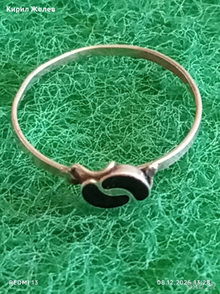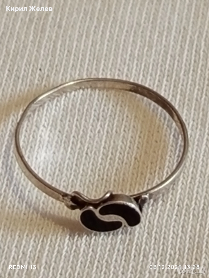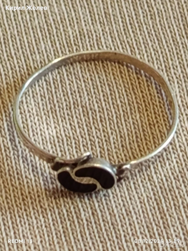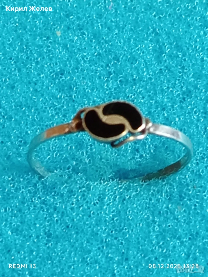 Елегантен нежен сребърен пръстен с черен емайл стил и класа 52376