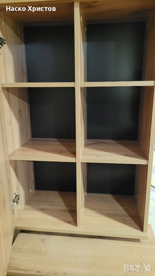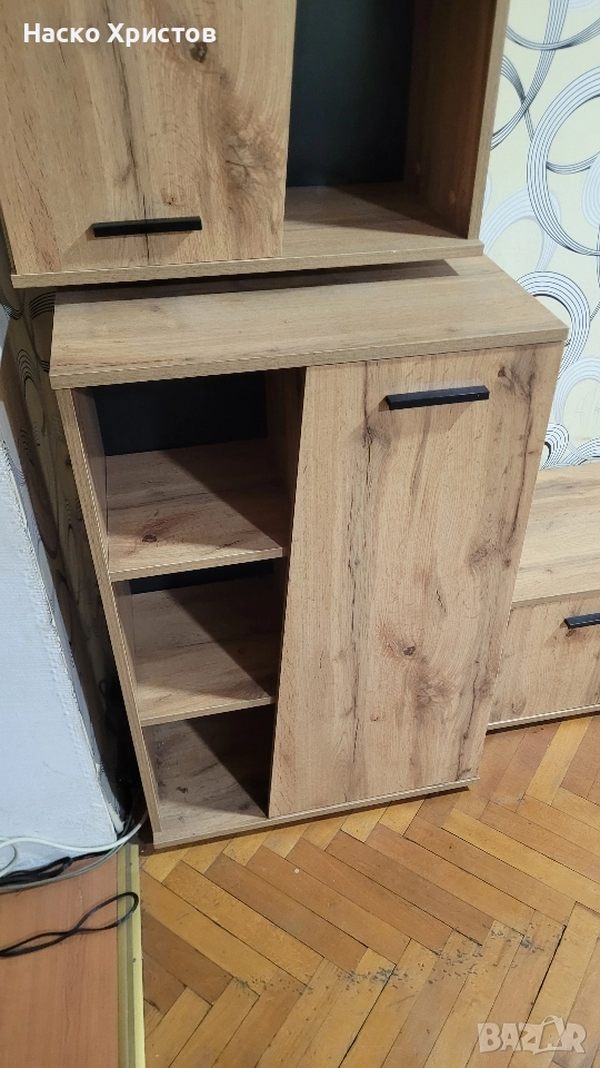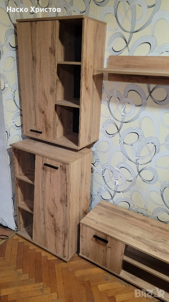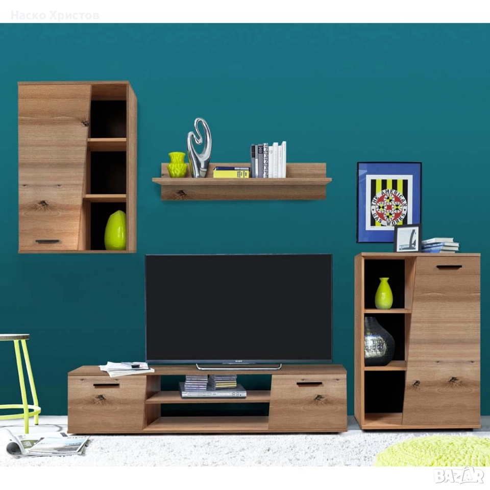 Повече информация: Холна секция в декор Дъб Артисан с размери: 240/37/180 см Елегантна холна секция, подходяща за вашата всекидневна, в дъб артисан и черни акценти, които ще откриете във фините, удобни дръжки. Общият габаритен размер на цялата секция е 240/37/180 см като всеки елемент по отделно притежава следните размери: Тв шкаф: 140/37/37,5 см; Горен шкаф: 60/32/90h; Долен шкаф: 60/32/90h; Рафт: 110/20/18h. Материалът, от който е произведена секцията съчетава в корпуса и във фронта ПДЧ с меламиново покритие - 16 мм. Дръжките и крачетата са създадени от PVC в черен цвят. Създайте приятна обстановка в дома си, където да споделяте моменти на уединение и уют, с компактни размери и практично предназначение, предимства, които предлага тази холна секция.