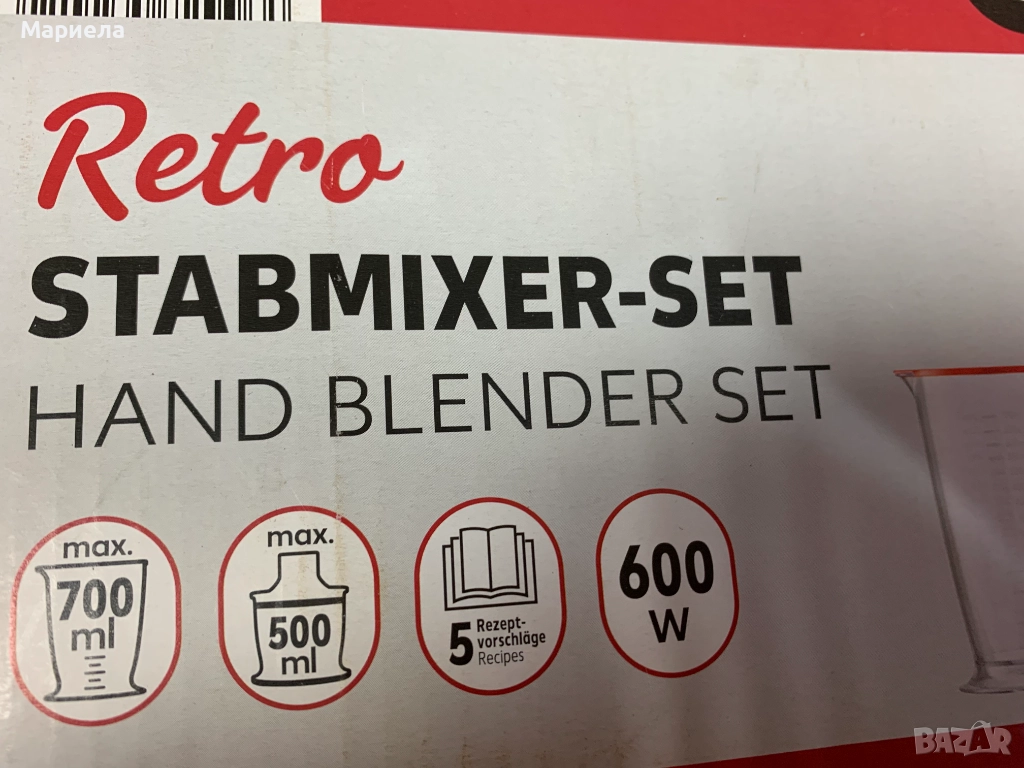 Мерителната чаша има скала за измерване на продуктите и е с обем 0,7л.