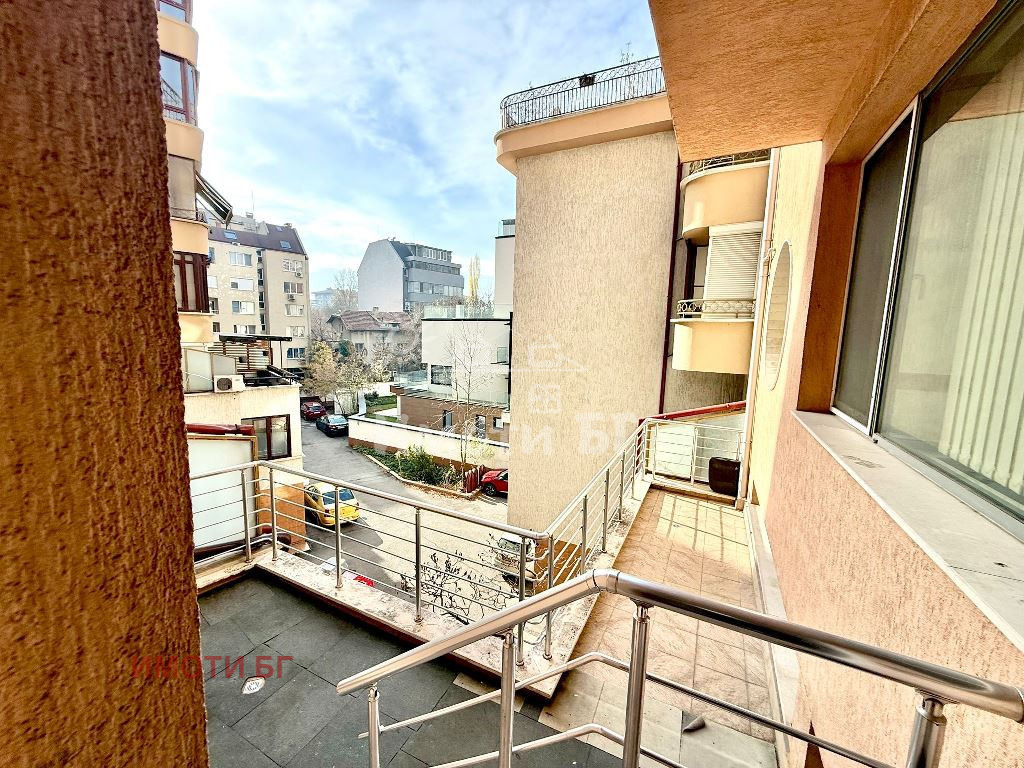 ИмотиБГ предлага под наем офис в представителна бизнес сграда с луксозни общи части и контрол на достъпа. Сградата е ситуирана на бул. Акад. Иван Евстатиев Гешов в близост до бул. България и множество спирки на градски транспорт, включително метро. Офисът заема цял етаж от сградата и е разпределен по следния начин: рецепция, удобно обособени отделни кабинети (9 на брой), кухня, самостоятелен двоен санитарен възел и собствена тераса. Настилки от гранитогрес и висок клас мокет, преградни стени от стъкло, възможност за ползване на частично обзавеждане. Отопление/охлаждане посредством термопомпа и система с индивидуални програматори. Обявената цена е без включен ДДС.