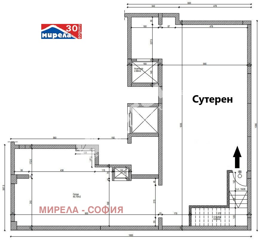 * На ниво сутерен са разпределени 142.98 кв. м. Има достъп за зареждане с товарен асансьор.