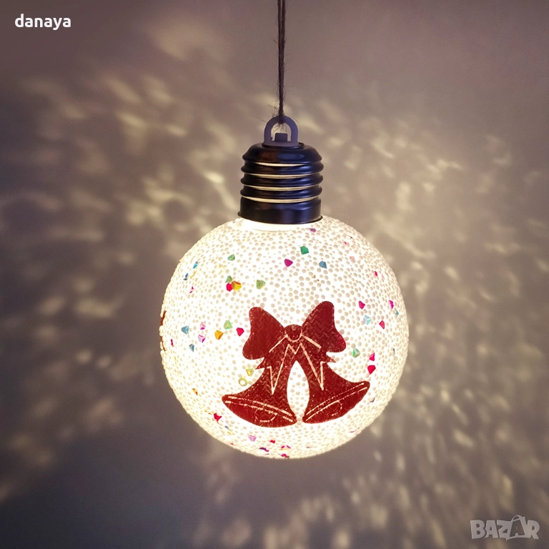 LED светлината оживява дизайна и разпръсква красиви отблясъци по стените, което прави топката идеална за елхи, гирлянди, festive декор на рафт или като самостоятелен акцент. Работи без кабели, с 3 бр. AG10 батерии, включени в комплекта, което позволява свободно поставяне навсякъде.