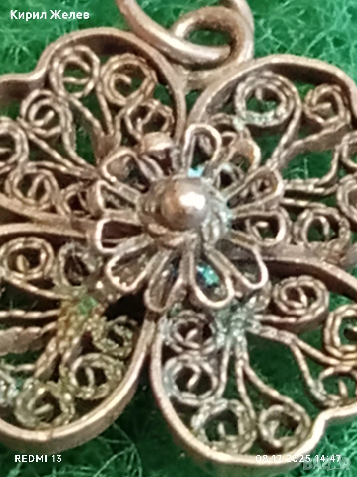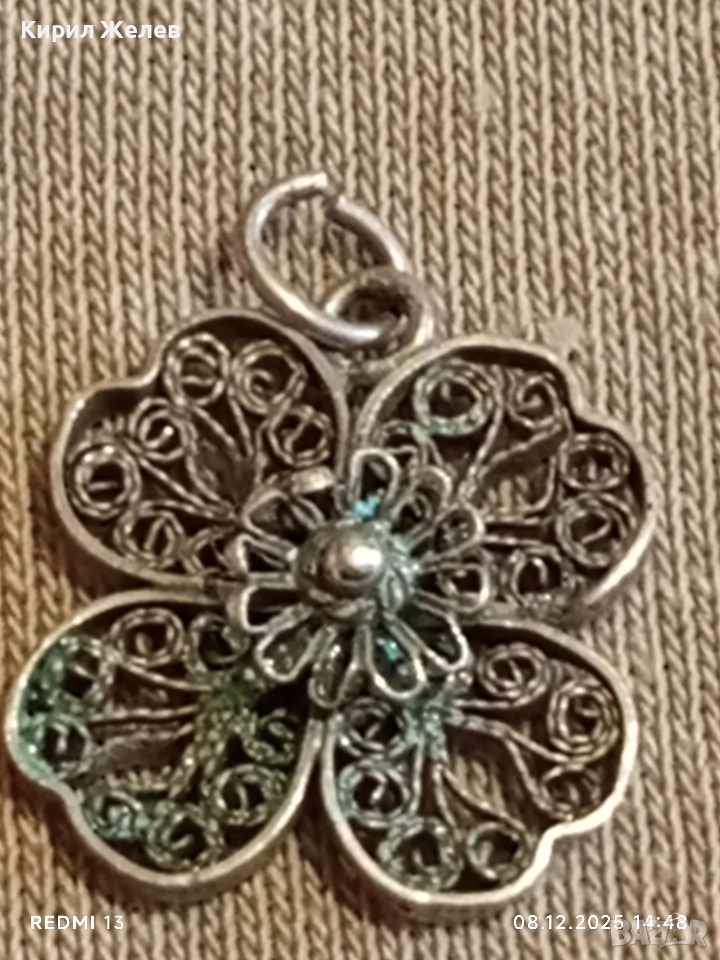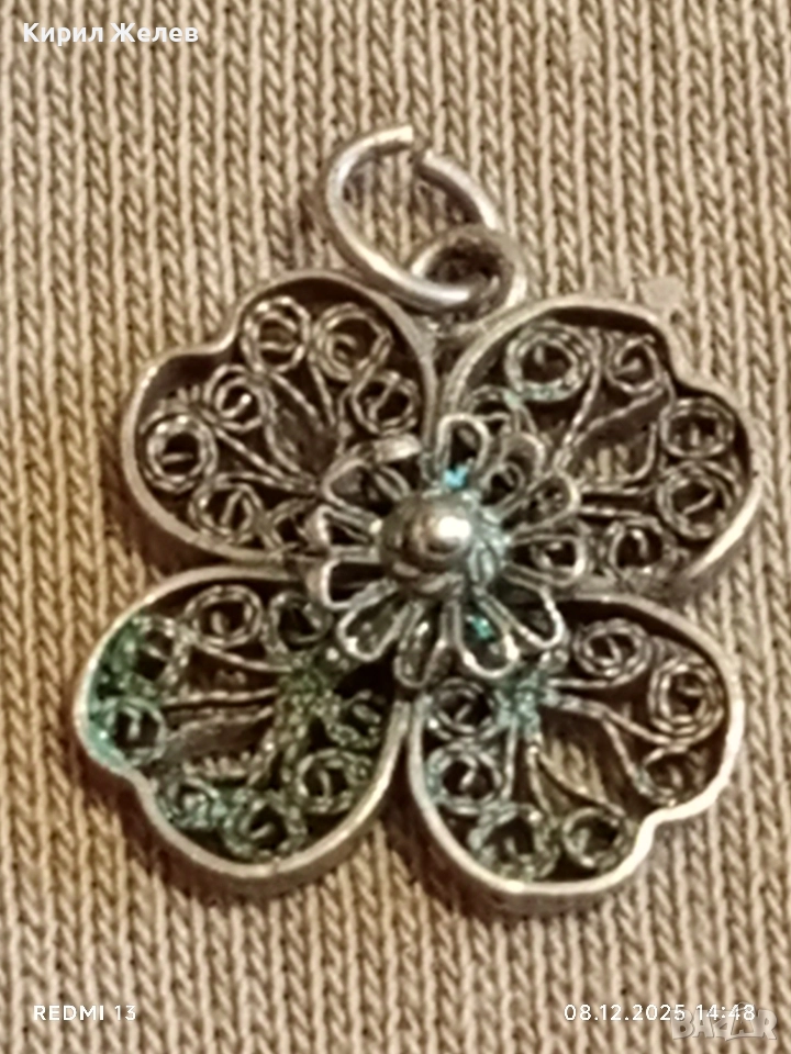 Старинна филигранна сребърен медальон четирилистна детелина ръчна изработка 28315