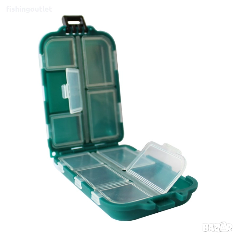 - Кутия с 10 отделения снабдени с индивидуално капаче. Размер 99x65x30mm.