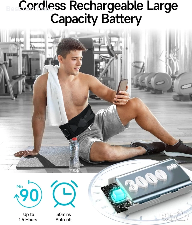 Вградена литиево-йонна батерия с капацитет 3000 mAh, можете да я носите навсякъде, където искате, след като е напълно заредена. Използвайте включения USB кабел за зареждане, за да я свържете към всеки USB порт, за да се насладите на до часове топлинен масаж.