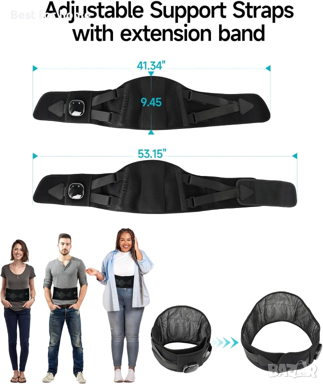 Масажорът за гръб с подгряване има много обмислен дизайн. Той има отделна удължителна лента, която се разтяга до 136 см (ОБЩО), като може да се регулира, за да пасне на талията на различни хора.