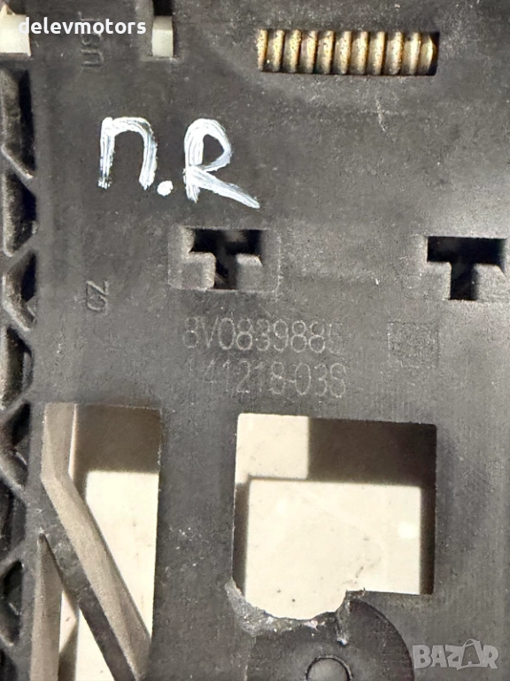 8V0839885 основа за предна дясна дръжка от Audi A3 1.0 TFSI, двигател CHZ, ск. кутия DSG 7 S-tronic SST, седан, 115 кс., 107 000 км., 2019 г., euro 6, Ауди А3 30 TFSI, sedan, engine CHZ, gear box DSG 7 S-tronic SST, 115 hp. в автоморга Delev Motors, между с. Каменар и с. Куманово гр. Варна.