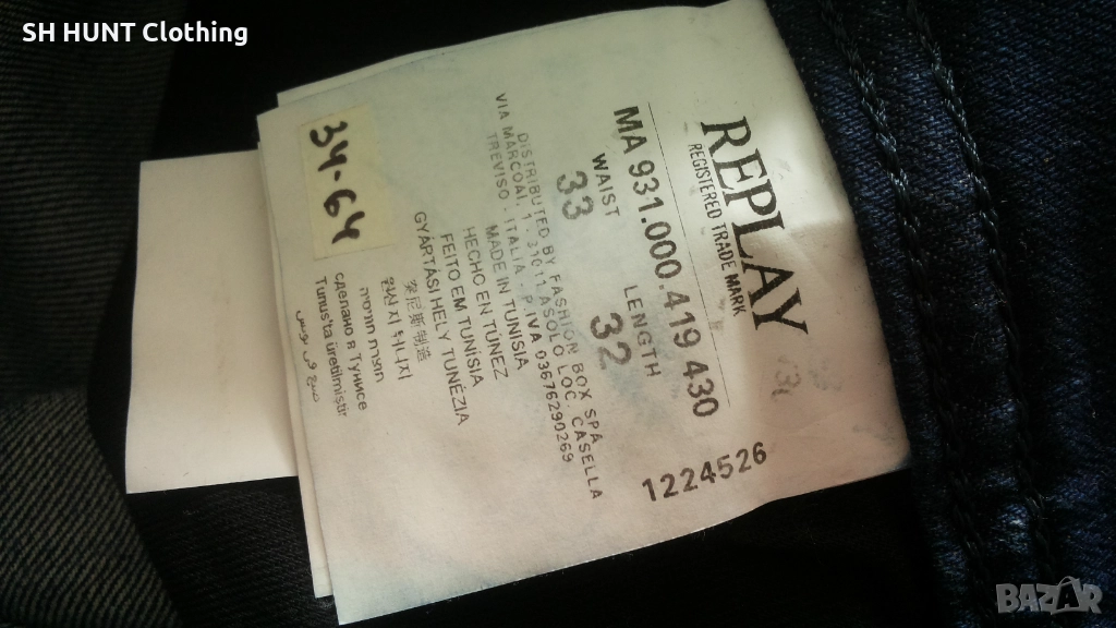 REPLAY Man Original Jeans Размер 33/32 мъжки еластични дънки 34-64 → Обява 52691771