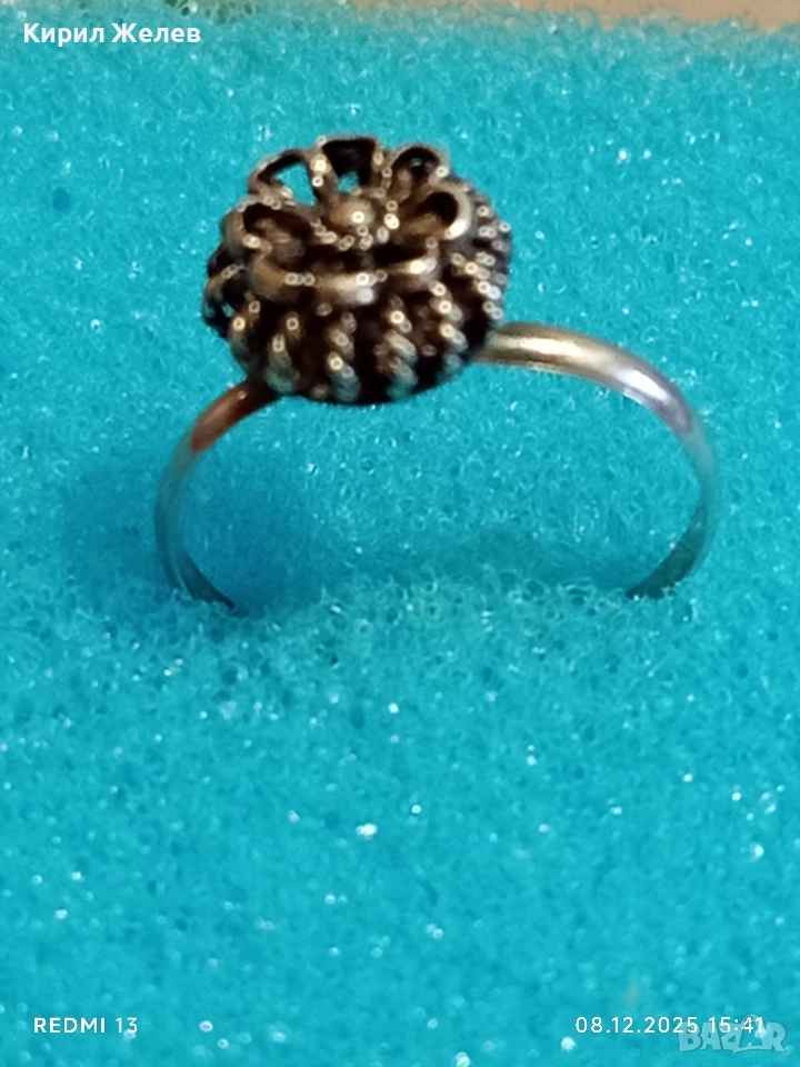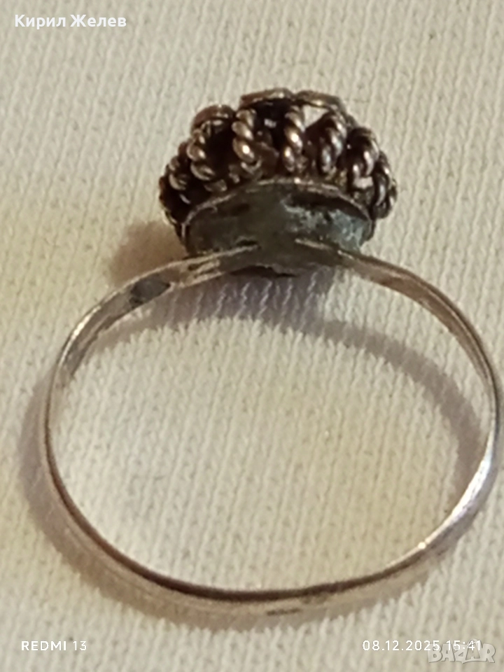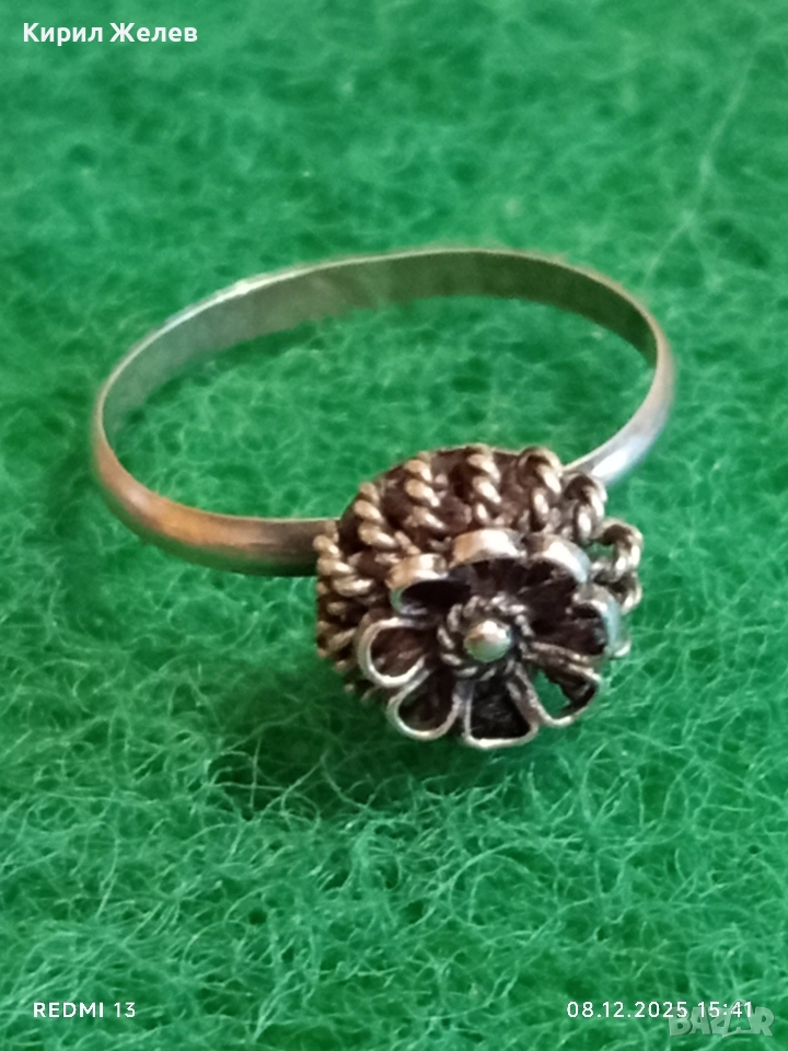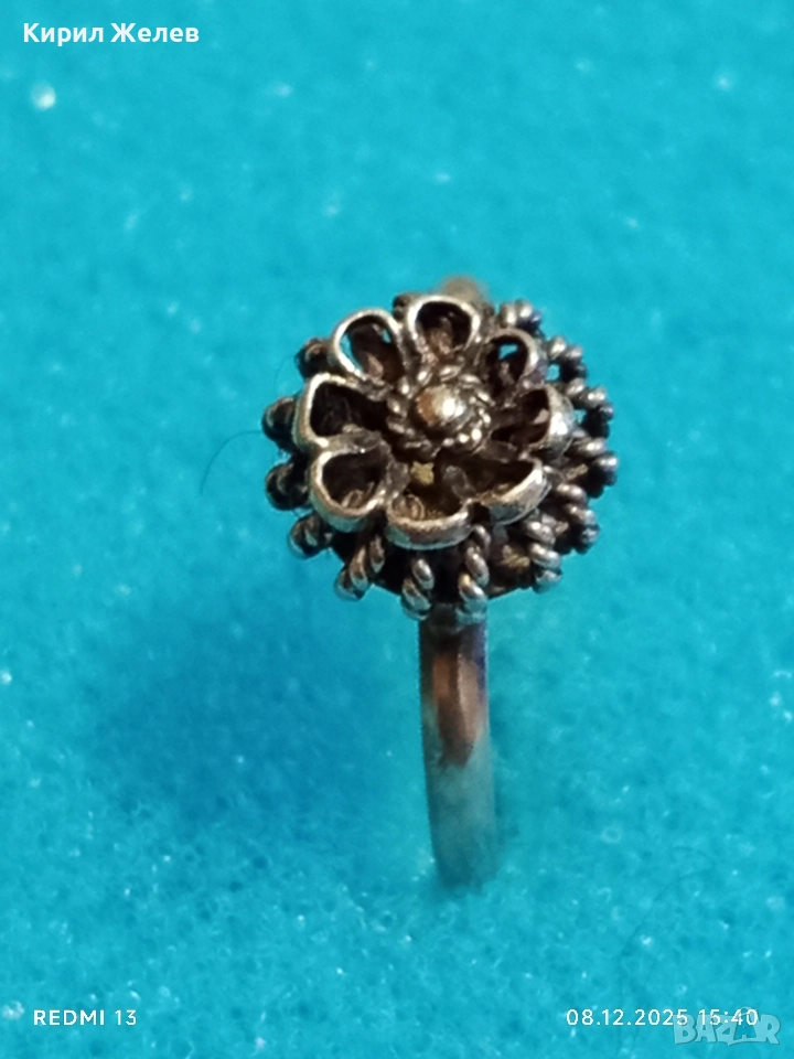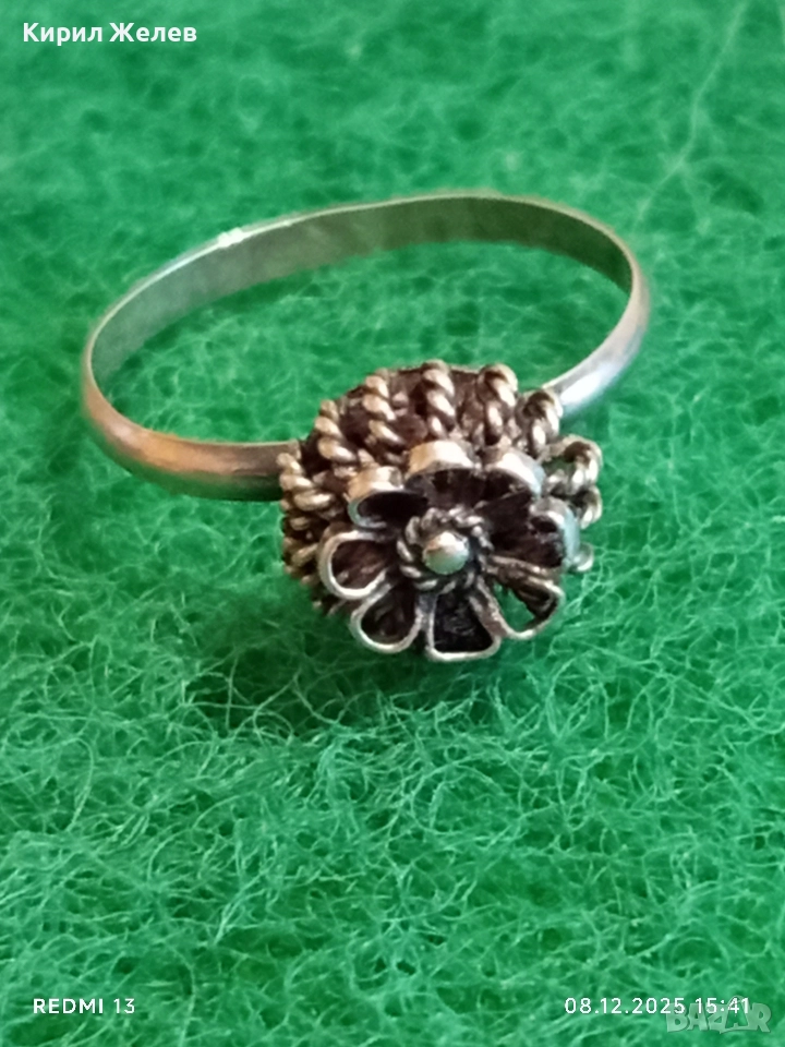 Изящен старинен сребърен пръстен флорален мотив ръчна изработка висока проба сребро 52468