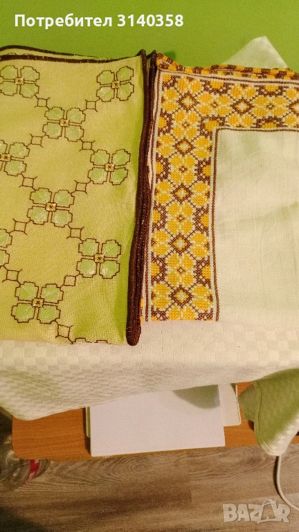снимка 1-лявото каре 60/50 см, дясното 74/80 см, всяко по 7 евро ,снимка 2 - ляво -72/64 см, дясно - 62/66 см всяко по 10 евро, снимка 3 - бяло 64/64 см, бежево -42/32 см, по 10 евро всяко, снимка 4 - 77/77 см-10 евро, снимка 5 - 68/70 см -17 евро, снимка 6 -56/56см - 16 евро, снимка 7 - лявото 70/75 см/ продадено/, дясното 78/78 см- всяко по 15 евро.При покупка на повече от 3 броя - отстъпка.
