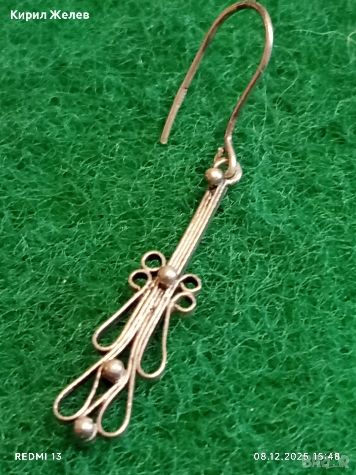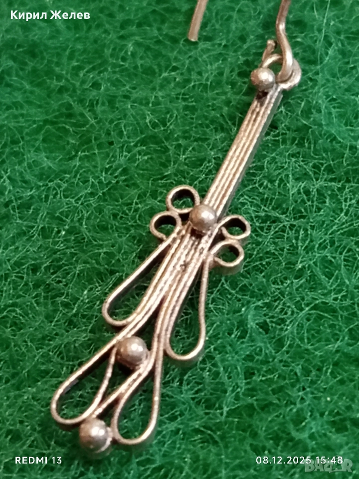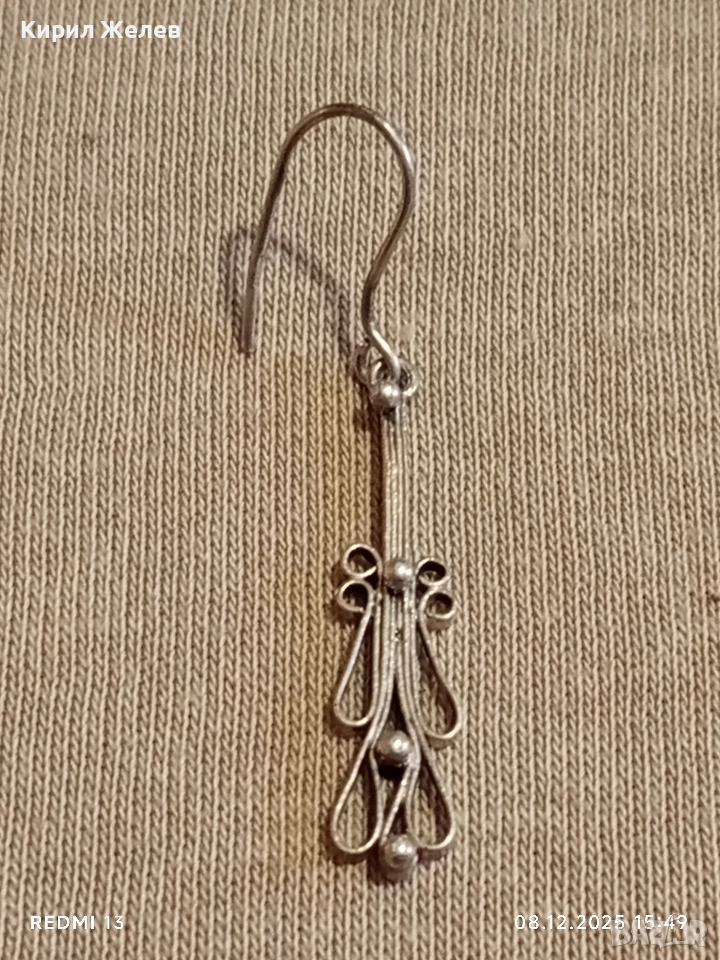 Сребърна нежна АРТ обеца ювелирна изработка 52416