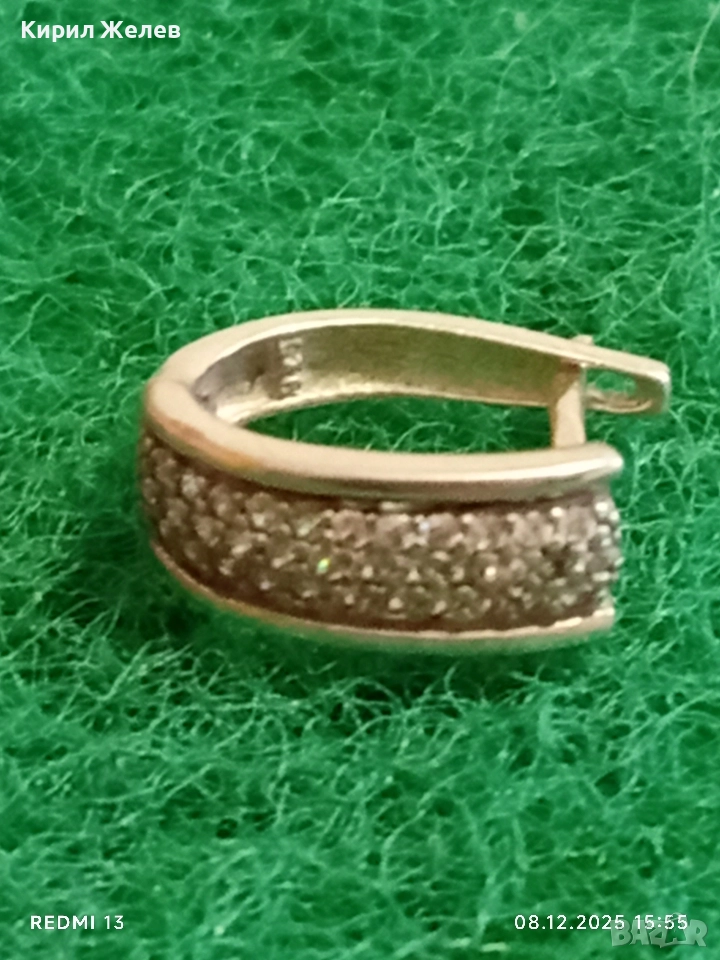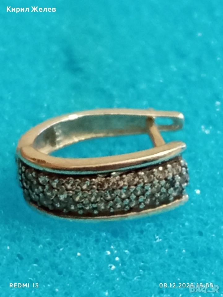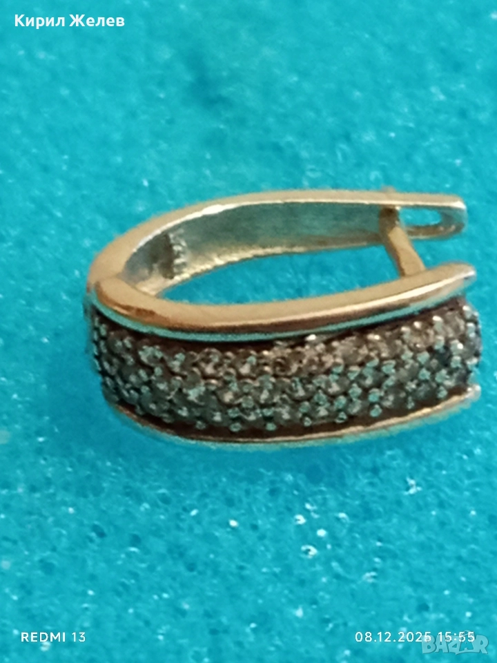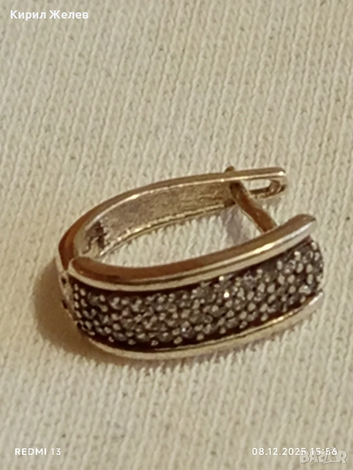 Скъпоценна сребърна обеца с миниатюрни цирконий ръчна изработка 31115
