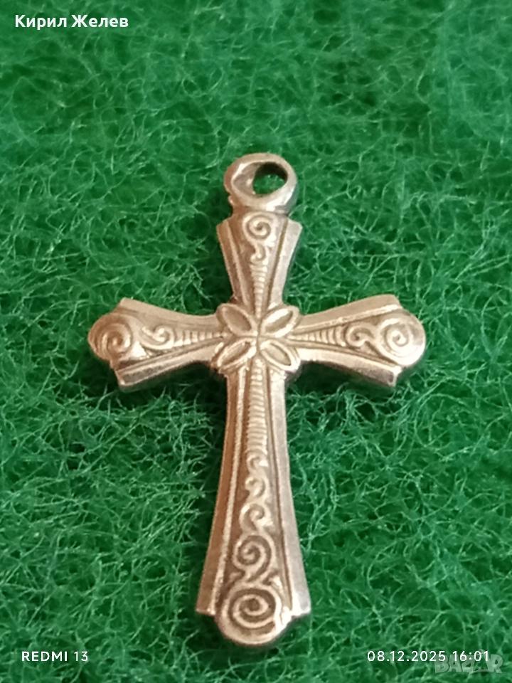 Винтидж бижу сребърен кръст красива орнаментика ювелирна изработка 52492