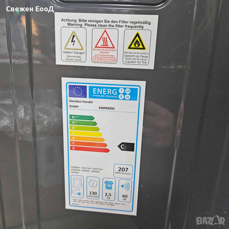 Капацитет: 2.5 кг номинален / до 4 кг използваем