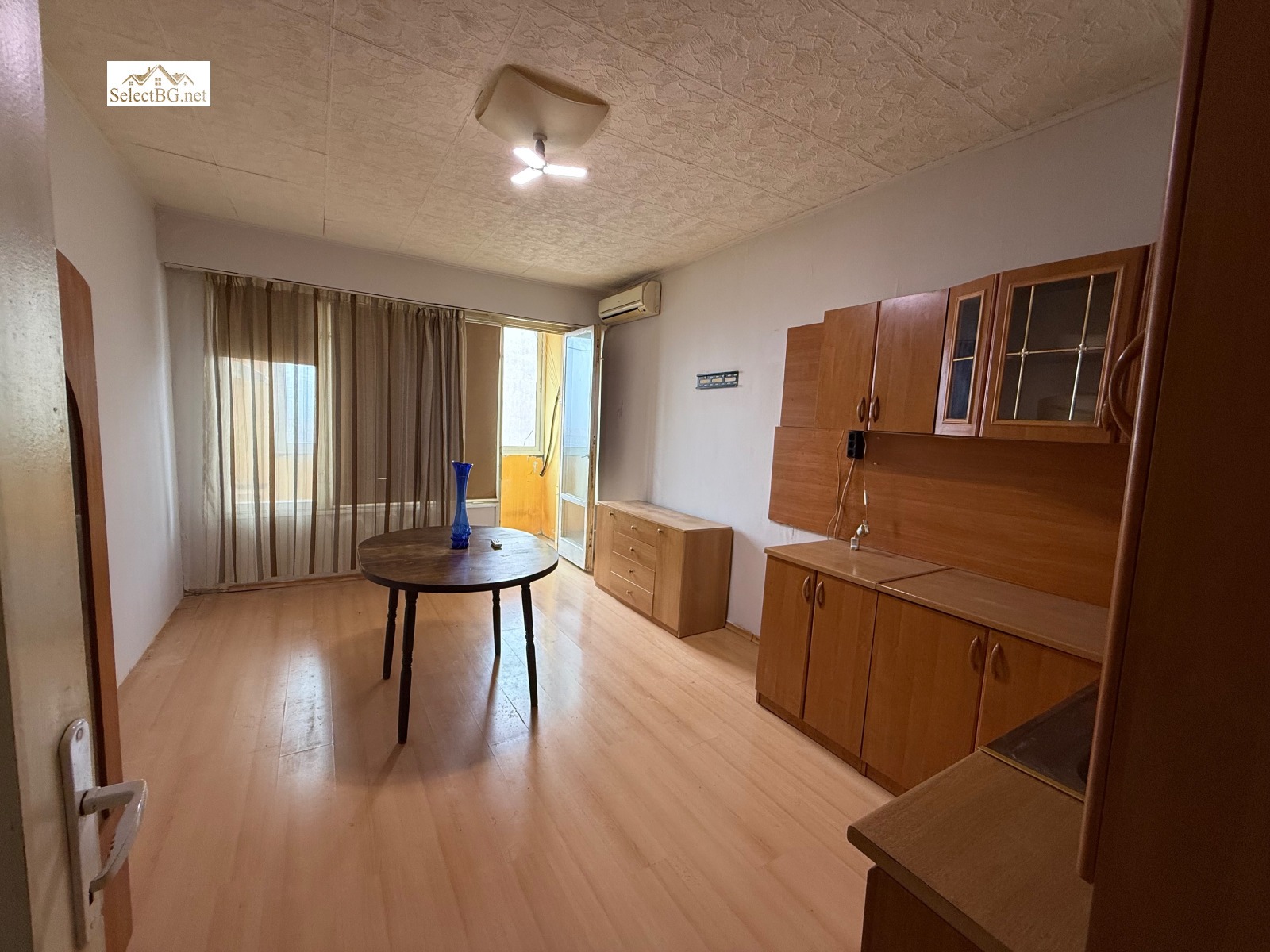 Панелен апартамент , преустроен с две спални , просторна всекидневна с кухненска част , мокро помещение с ВиК изводи - чиста и мръсна вода . Баня и тоалетна отделно в много добро състояние. Апартамента има нужда от освежителен ремонт след дългосрочни наематели . ВиК и ел.инсталацията са сменени. Изложение изток-запад , последен етаж. Страхотна локация в близост до големи хранителни магазини и търговски комплекси , парк , училище и др.