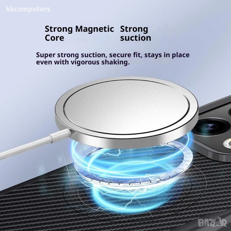 Магнитна универсалност (MagSafe): Вградена магнитна сърцевина за лесно закачане към магнитни автомобилни държачки, стойки и безжични заряди.