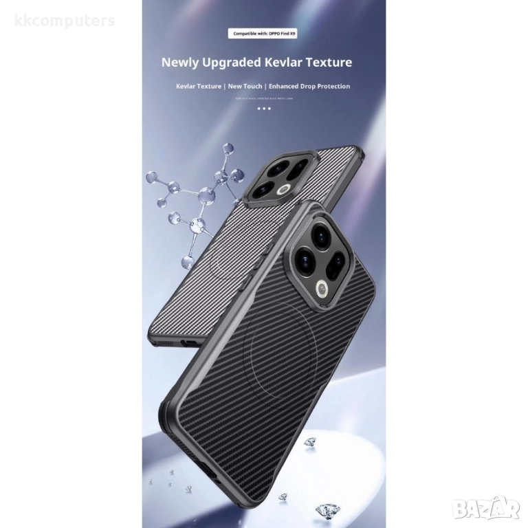Идеален за: Собственици на Oppo Find X9 Pro, които използват магнитни аксесоари, ценят премиумния тактилен дизайн и екстремната защита, и искат готово решение (калъф + протектор). За активни потребители и автолюбители.