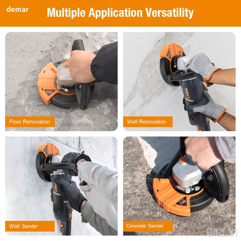 Тази бетоношлайф машина предлага мощна производителност с 1500W мотор и регулируеми настройки на скоростта за задачи, вариращи от леко полиране до тежко шлайфане, докато вградените функции за безопасност, като защита от претоварване и автоматично изключване, повишават безопасността на потребителя. Ергономичната ѝ дръжка и регулируемите дръжки подобряват комфорта и контрола при продължителна употреба, а интегрираната система за прахоулавяне помага за поддържане на по-чисто и здравословно работно място, като ефективно улавя отломките. Подходяща за бетон, камък, подове и стени, тя се справя с изглаждане, нивелиране и подготовка на повърхности в различни сценарии, с препоръчителни почивки за предотвратяване на прегряване. (включва 2 диамантени шлифовъчни диска)