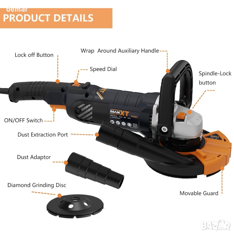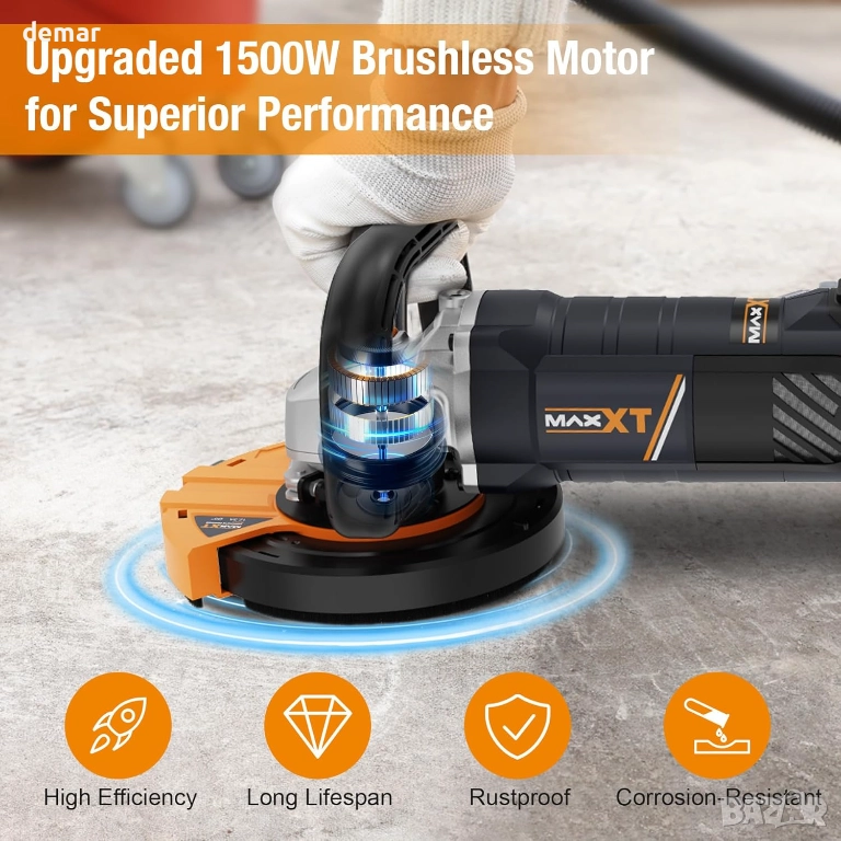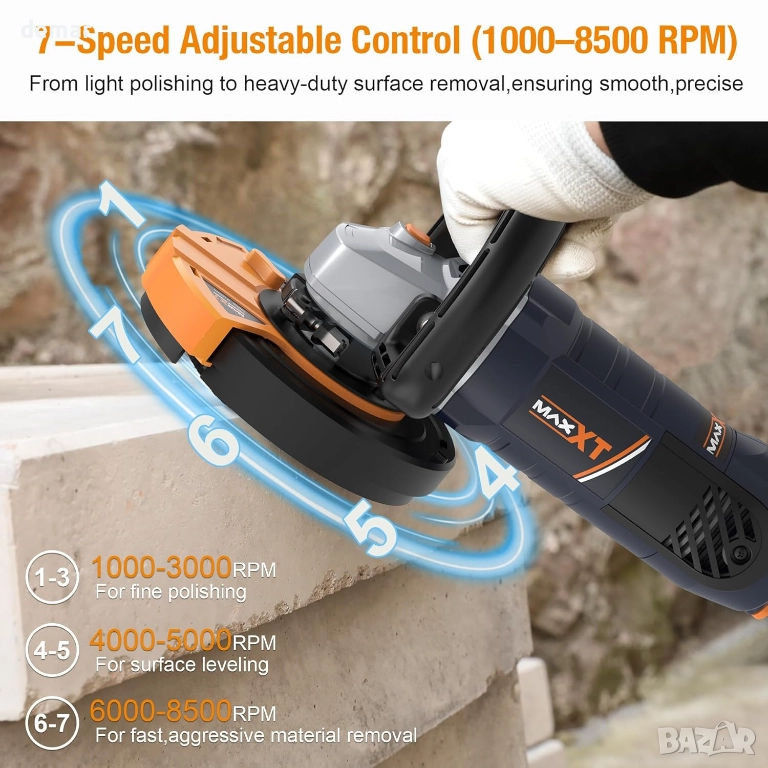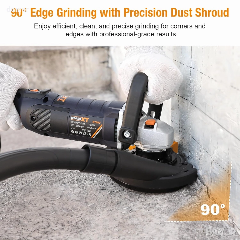 MAXXT Ъглошлайф за бетон, шлайфмашина с диск 12,5 см, 1000-8500 об/мин