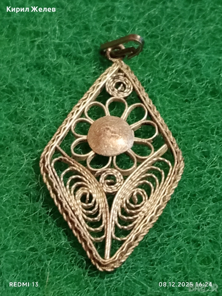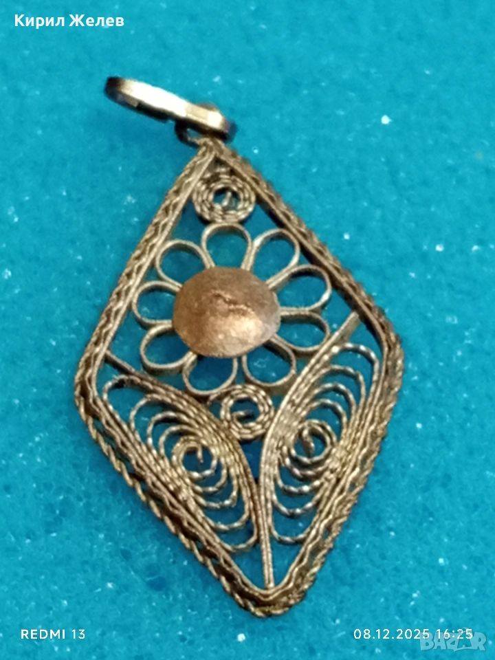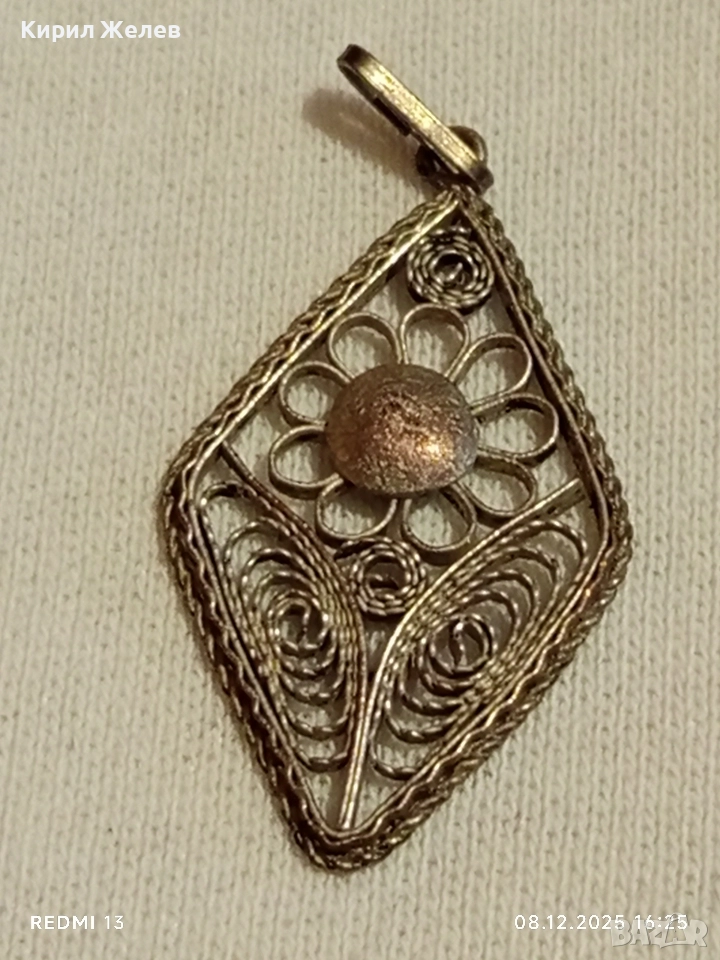 Старинен ажурен сребърен медальон филигранна ръчна изработка 18156