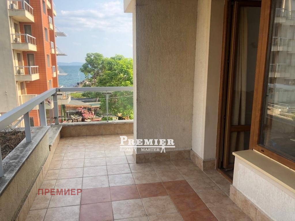 Предлагаме на Вашето внимание прекрасен тристаен апартамент на 1-ва линия от морето, в южната част на град Поморие. Намира се на много привлекателно място. Сградата е на плажната ивица, покрита с фин пясък, и в същото време в непосредствена близост до центъра на града с множество ресторанти, клубове и нощен живот. С невероятна гледка към морето и красиви естествени пясъчни дюни. Имотът е обзаведен и оборудван, готов за нанасяне или отдаване под наем. Апартаментът е с площ от 132 кв. м. Състои се от голям хол с кухненски бокс, две спални, две бани и тераса с изглед към морето. Намира се на 3-ти етаж. В сградата има асансьор. Акт 16 с отделни партиди за електричество и вода.