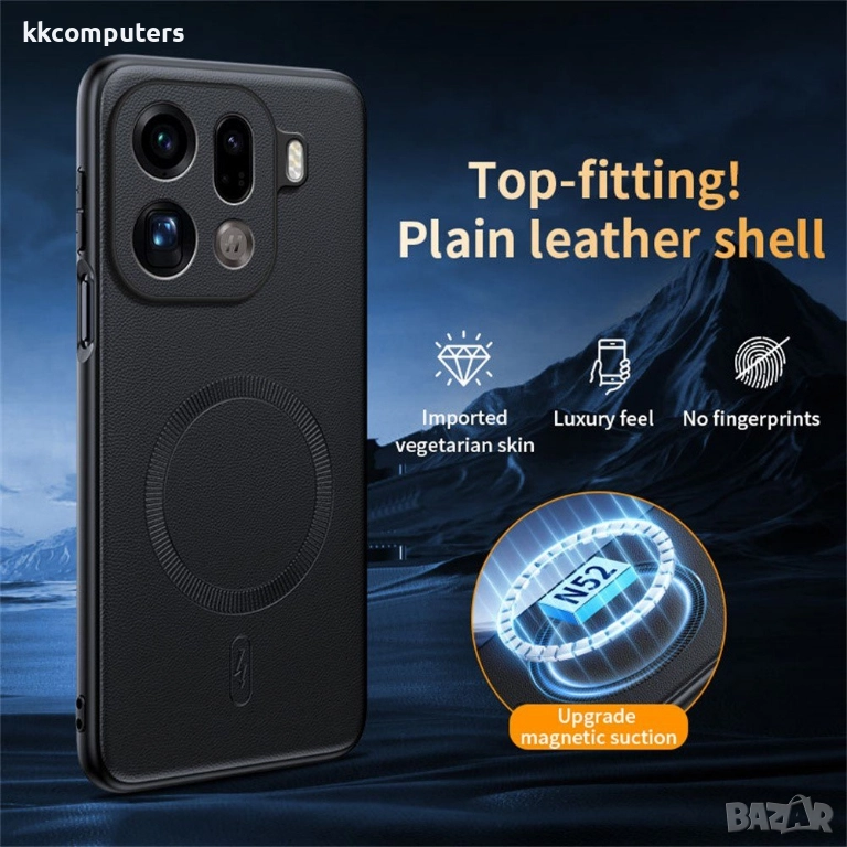 Магнитен кожен калъф с MagSafe за Oppo Find X9 Pro 5G (Включен Скрийн протектор)