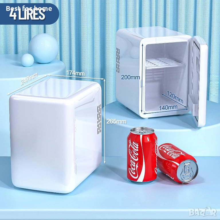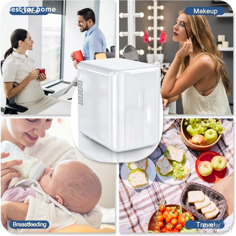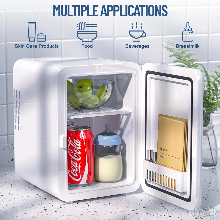 Многофункционален мини хладилник - Този компактен хладилник е с капацитет от 4 литра, можете да съхранявате до 6 кутии с любимите си напитки в него! Може да се използва и за съхранение на козметика и продукти за грижа за кожата. С подвижни рафтове е удобно да разделяте предметите и да използвате пространството рационално. Ключалките на вратата държат вратите затворени по време на грубо пътуване, идеални за ежедневна употреба.
