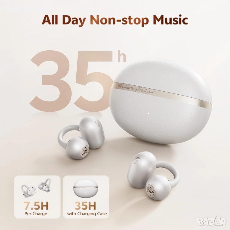 【35 часа общо време за възпроизвеждане】Слушалките предлагат 7,5 часа време за слушане с едно зареждане, а три презареждания чрез кутията за зареждане удължават времето ви за слушане с до 35 часа. Те ви осигуряват страхотен звук в HD, по-издръжливо слушане и всичко това от сутрин до вечер.