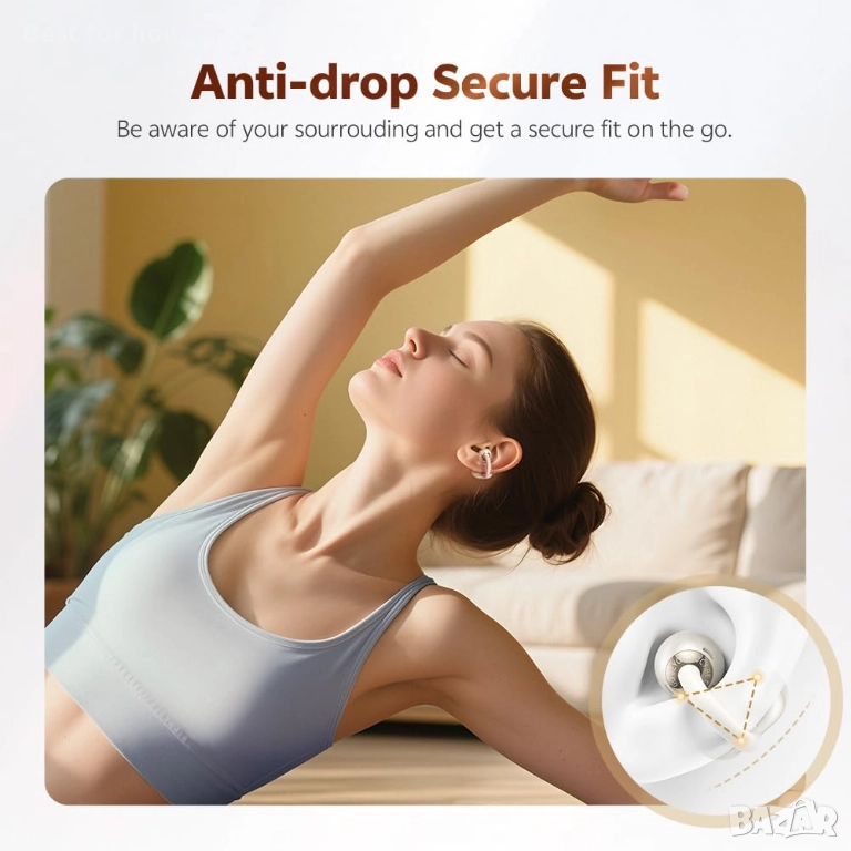 【Безпроблемна свързаност и технология за насочено аудио】Използвайки Bluetooth 6.0, слушалките с щипка осигуряват ултра бързо и стабилно сдвояване на устройства. Технологията им за насочено аудио намалява изтичането на звук с 90% в сравнение със стандартните отворени слушалки, насочвайки звука прецизно в ушите за лично слушане.