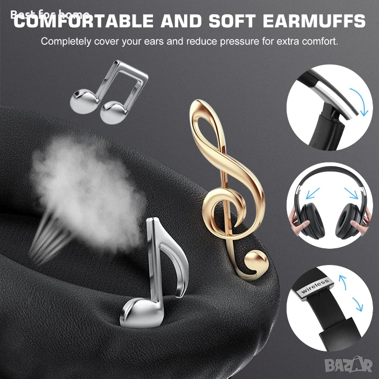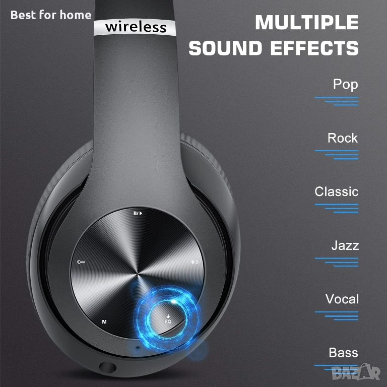 Bluetooth слушалки за уши, 60 часа време на възпроизвеждане, Безжични Bluetooth слушалки с 6 режима на еквалайзер, Слушалки с микрофон.