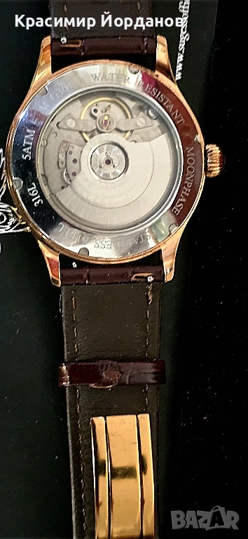 Нов автоматичен часовник с документи и гаранция. Диам. 41 мм височина. 14 мм дьлж. 47 мм.Каишка шир. 21 мм Сапфир стькло. Водоустойчивост 50 м. Голяма дата. 27 камька. Запасен ход 48 часа