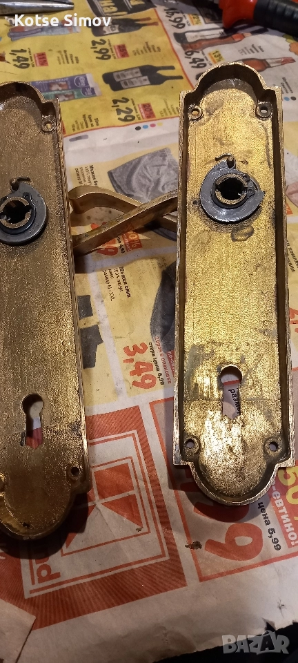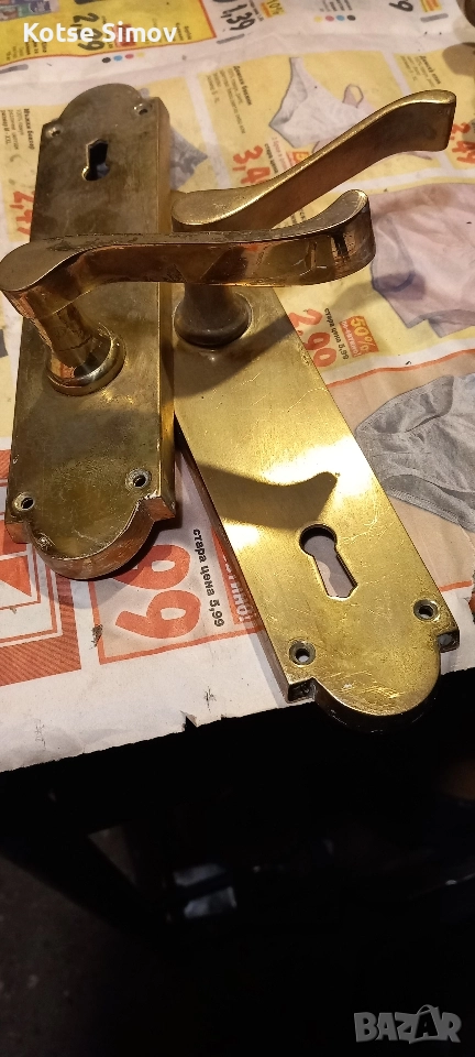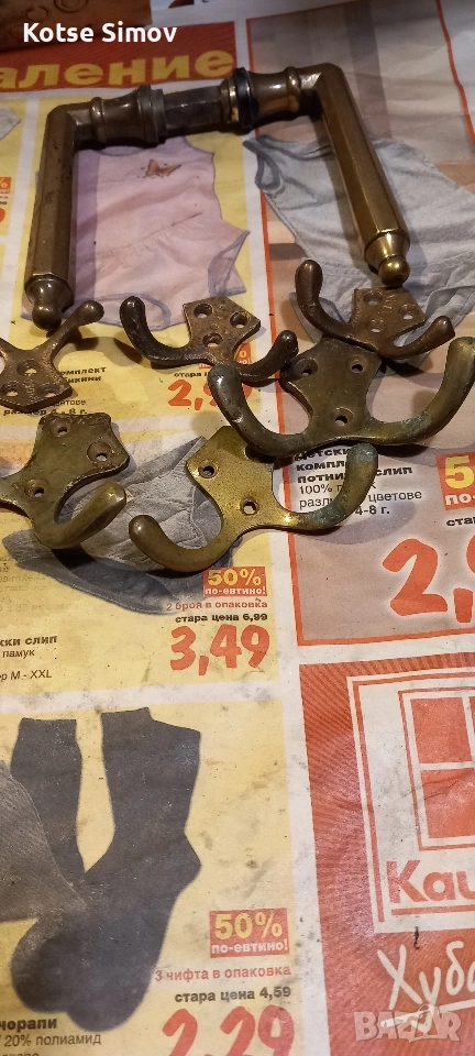1.Масивни месингови дръжки за врата/снимки 1;2;3/-69лв. 2.Месингови дръжки за врата- 39лв./снимки 4;5;6/ 3.Месингови закачалки-малки 3лв,големи 5лв.