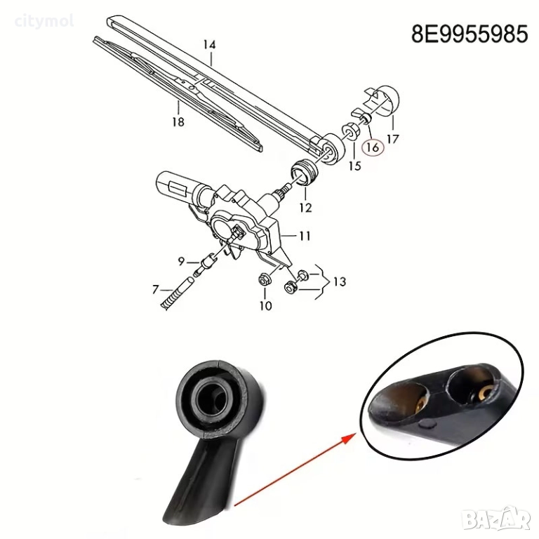 Дюза за измиване на задната чистачка за AUDI, съвмстима и за предното стъкло