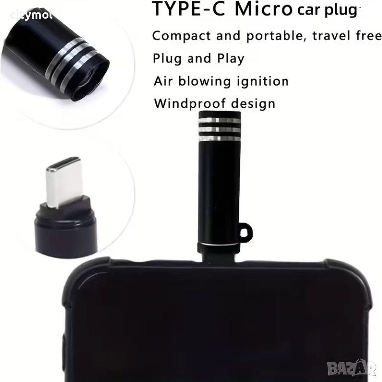 - Иновативна безпламъчна запалка, която работи директно чрез USB Type-C връзка към порта за зареждане на вашия мобилен телефон. Може да се използва и частично презареждащо се мобилно захранващо оборудване.