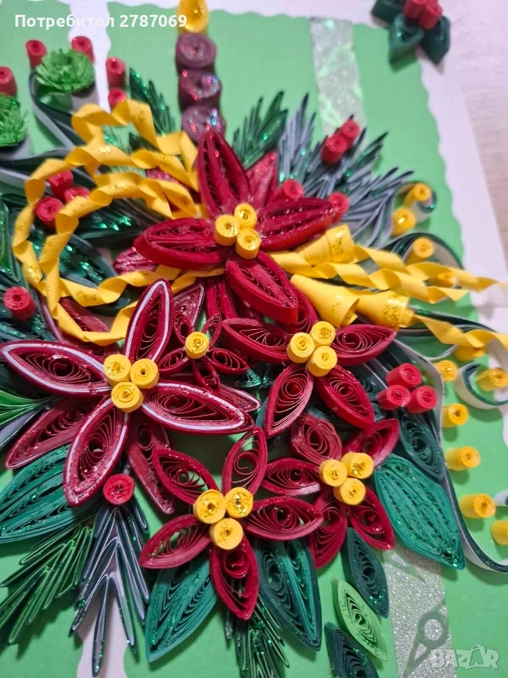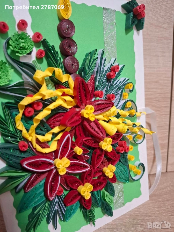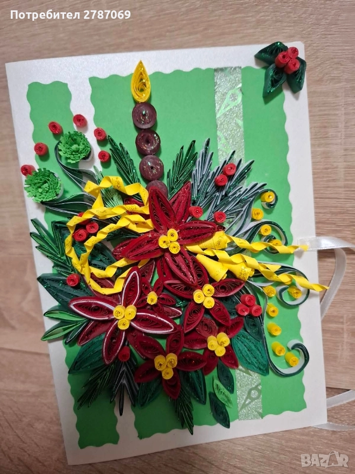 Ръчно изработена коледна картичка с квилинг елементи. Стилен и празничен акцент за вашия подарък. 15 лв. За поръчки – лично съобщение.🌲